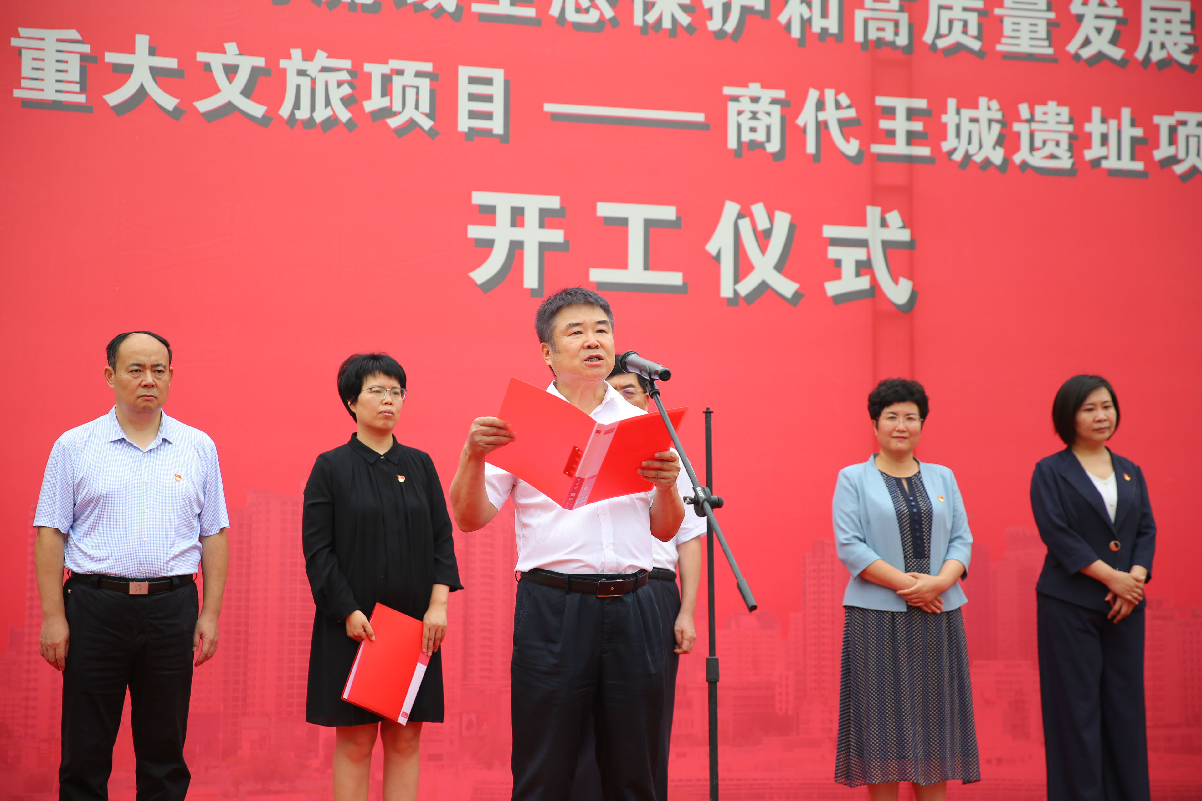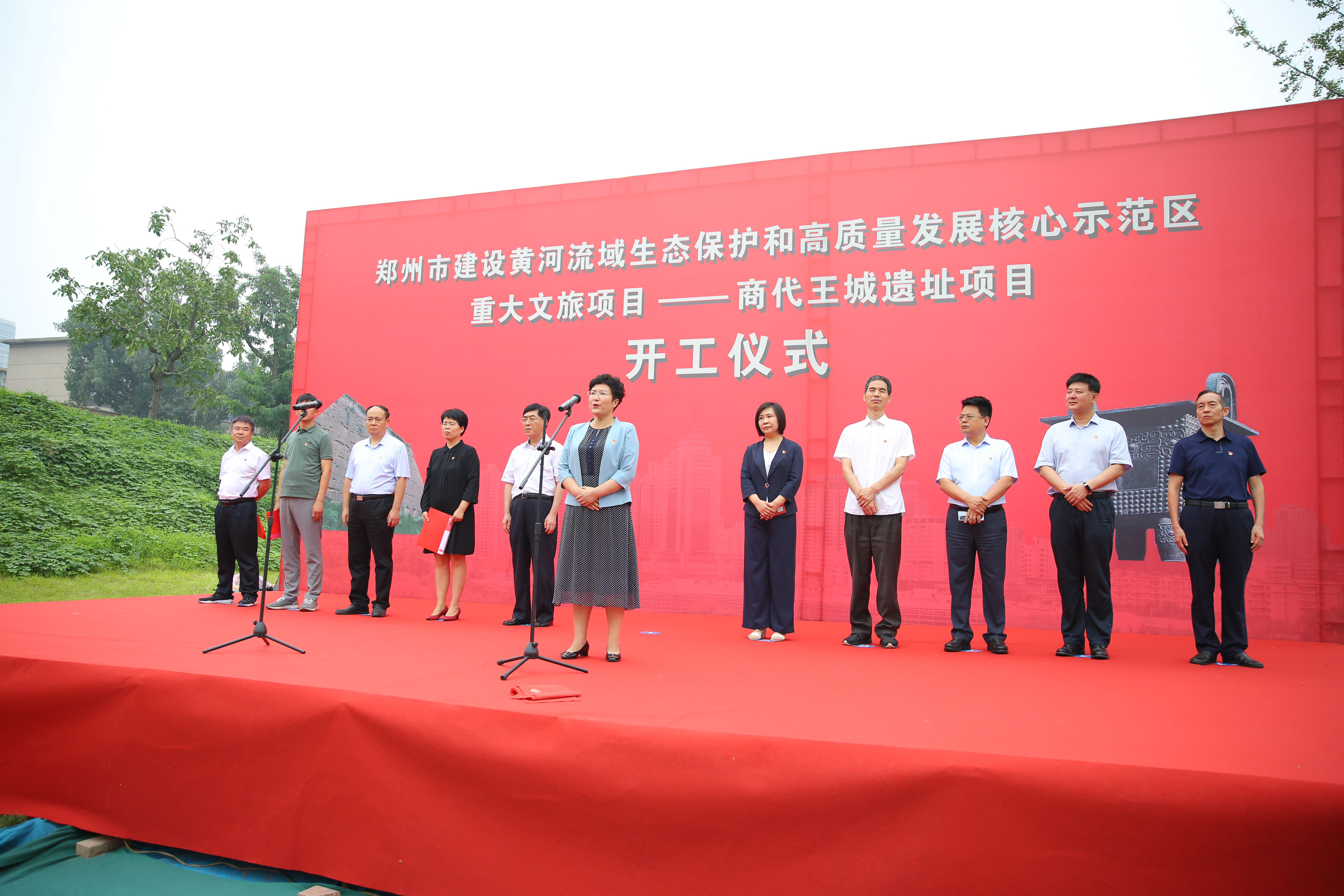 2020年7月24日上午,鄭州市建設(shè)黃河流域生態(tài)保護(hù)和高質(zhì)量發(fā)展核心示范區(qū)重大文旅項(xiàng)目集中開工活動(dòng)——商代王城遺址項(xiàng)目開工儀式在亳都古巷項(xiàng)目現(xiàn)場舉辦。管城回族區(qū)委副書記、區(qū)長張艷敏等區(qū)委區(qū)政府領(lǐng)導(dǎo)出席,商都控股公司黨支部書記、董事長牛曉亮應(yīng)邀參加本次活動(dòng)。